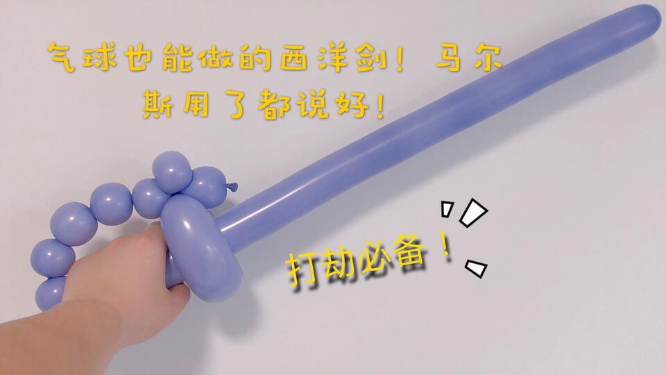 使用另一个颜色的气球作为剑身,将剑身的气球口部与剑柄绑在一起。
